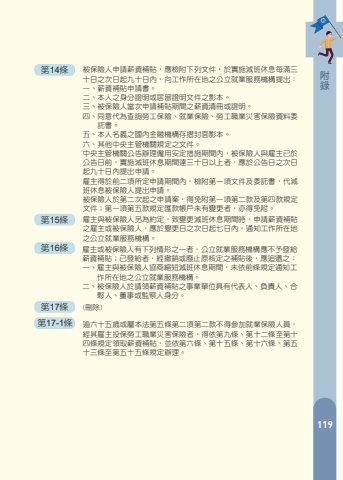 %u9304%u9644%u7b2c12%u689d %u3000%u516c%u7acb%u5c31%u696d%u670d%u52d9%u6a5f%u69cb%u61c9%u4f9d%u4e0b%u5217%u898f%u5b9a%uff0c%u767c%u7d66%u88ab%u4fdd%u96aa%u4eba%u85aa%u8cc7%u88dc%u8cbc%uff1a%u3000%u4e00%u3001%u6309%u88ab%u4fdd%u96aa%u4eba%u65bc%u5be6%u65bd%u6e1b%u73ed%u4f11%u606f%u65e5%u524d%u4e00%u500b%u6708%u81f3%u524d%u4e09%u500b%u6708%u4e4b%u5e73%u5747%u6708%u6295%u3000%u3000%u3000%u4fdd%u85aa%u8cc7%uff0c%u8207%u5be6%u65bd%u6e1b%u73ed%u4f11%u606f%u5f8c%u5be6%u969b%u5354%u8b70%u85aa%u8cc7%u5dee%u984d%u4e4b%u767e%u5206%u4e4b%u4e94%u5341%u767c%u3000%u3000%u3000%u7d66%u3002%u4f46%u88ab%u4fdd%u96aa%u4eba%u65bc%u73fe%u8077%u55ae%u4f4d%u53d7%u50f1%u672a%u6eff%u4e09%u500b%u6708%u8005%uff0c%u4f9d%u5176%u65bc%u73fe%u8077%u55ae%u3000%u3000%u3000%u4f4d%u5be6%u969b%u53c3%u52a0%u5c31%u696d%u4fdd%u96aa%u671f%u9593%u4e4b%u5e73%u5747%u6708%u6295%u4fdd%u85aa%u8cc7%u8a08%u7b97%u3002%u3000%u4e8c%u3001%u524d%u6b3e%u5be6%u65bd%u6e1b%u73ed%u4f11%u606f%u5f8c%u5be6%u969b%u5354%u8b70%u85aa%u8cc7%uff0c%u6700%u4f4e%u4ee5%u4e2d%u592e%u4e3b%u7ba1%u6a5f%u95dc%u516c%u544a%u3000%u3000%u3000%u4e4b%u6bcf%u6708%u6700%u4f4e%u5de5%u8cc7%u6578%u984d%u6838%u7b97%u3002%u4f46%u5e87%u8b77%u6027%u5c31%u696d%u4e4b%u8eab%u5fc3%u969c%u7919%u8005%u53ca%u90e8%u5206%u3000%u3000%u3000%u5de5%u6642%u52de%u5de5%uff0c%u4e0d%u5728%u6b64%u9650%u3002%u3000%u4e09%u3001%u6bcf%u6708%u4e0d%u5f97%u8d85%u904e%u52de%u5de5%u4fdd%u96aa%u6295%u4fdd%u85aa%u8cc7%u5206%u7d1a%u8868%u6240%u5b9a%u6700%u9ad8%u6708%u6295%u4fdd%u85aa%u8cc7%uff0c%u3000%u3000%u3000%u8207%u4e2d%u592e%u4e3b%u7ba1%u6a5f%u95dc%u516c%u544a%u6bcf%u6708%u6700%u4f4e%u5de5%u8cc7%u5dee%u984d%u4e4b%u767e%u5206%u4e4b%u4e94%u5341%u3002%u3000%u56db%u3001%u85aa%u8cc7%u88dc%u8cbc%u91d1%u984d%u63a1%u7121%u689d%u4ef6%u9032%u4f4d%u65b9%u5f0f%u8a08%u7b97%u81f3%u767e%u4f4d%u6578%u3002%u3000%u540c%u4e00%u88ab%u4fdd%u96aa%u4eba%u540c%u6642%u53d7%u50f1%u65bc%u4e8c%u500b%u4ee5%u4e0a%u96c7%u4e3b%uff0c%u5f97%u4f9d%u898f%u5b9a%u5206%u5225%u7533%u8acb%u85aa%u8cc7%u3000%u88dc%u8cbc%u3002%u3000%u540c%u4e00%u88ab%u4fdd%u96aa%u4eba%u53d7%u50f1%u65bc%u540c%u4e00%u96c7%u4e3b%uff0c%u4e0d%u5f97%u65bc%u540c%u4e00%u6e1b%u73ed%u4f11%u606f%u671f%u9593%uff0c%u91cd%u8907%u7533%u3000%u8acb%u85aa%u8cc7%u88dc%u8cbc%u3002%u3000%u53d7%u50f1%u65bc%u540c%u4e00%u96c7%u4e3b%u4e4b%u88ab%u4fdd%u96aa%u4eba%u65bc%u9818%u53d6%u7b2c%u4e00%u9805%u85aa%u8cc7%u88dc%u8cbc%u671f%u9593%uff0c%u4e0d%u5f97%u91cd%u8907%u3000%u9818%u53d6%u653f%u5e9c%u6a5f%u95dc%u5176%u4ed6%u76f8%u540c%u6027%u8cea%u4e4b%u88dc%u52a9%u6216%u6d25%u8cbc%u3002%u7b2c10%u689d %u3000(%u522a%u9664)%u7b2c11%u689d %u3000(%u522a%u9664)%u7b2c13%u689d %u3000%u85aa%u8cc7%u88dc%u8cbc%u65bc%u6e1b%u73ed%u4f11%u606f%u5be6%u65bd%u65e5%u8d77%u7b97%uff0c%u516c%u7acb%u5c31%u696d%u670d%u52d9%u6a5f%u69cb%u4f9d%u4e0b%u5217%u898f%u5b9a%u8a08%u3000%u7b97%u767c%u7d66%u88ab%u4fdd%u96aa%u4eba%u85aa%u8cc7%u88dc%u8cbc%u4e4b%u671f%u9593:%u3000%u4e00%u3001%u4e00%u500b%u6708%u4ee5%u4e09%u5341%u65e5%u8a08%u7b97%uff0c%u767c%u7d66%u4e00%u500b%u6708%u3002%u3000%u4e8c%u3001%u6700%u672b%u6b21%u7533%u8acb%u4e4b%u65e5%u6578%u70ba%u4e8c%u5341%u65e5%u4ee5%u4e0a%uff0c%u672a%u6eff%u4e09%u5341%u65e5%u8005%uff0c%u767c%u7d66%u4e00%u500b%u6708%u3000%u3000%u3000%uff1b%u5341%u65e5%u4ee5%u4e0a%uff0c%u672a%u6eff%u4e8c%u5341%u65e5%u8005%uff0c%u767c%u7d66%u534a%u500b%u6708%u3002%u3000%u85aa%u8cc7%u88dc%u8cbc%u767c%u7d66%u671f%u9593%uff0c%u61c9%u65bc%u4e2d%u592e%u4e3b%u7ba1%u6a5f%u95dc%u516c%u544a%u8fa6%u7406%u50f1%u7528%u5b89%u5b9a%u63aa%u65bd%u671f%u9593%u3000%u5167%u3002%u3000%u4e2d%u592e%u4e3b%u7ba1%u6a5f%u95dc%u516c%u544a%u8fa6%u7406%u50f1%u7528%u5b89%u5b9a%u63aa%u65bd%u4e4b%u671f%u9593%u672a%u4e2d%u65b7%u8005%uff0c%u88ab%u4fdd%u96aa%u4eba%u9818%u3000%u53d6%u85aa%u8cc7%u88dc%u8cbc%uff0c%u5176%u5408%u4f75%u9818%u53d6%u671f%u9593%u4ee5%u4e8c%u5341%u56db%u500b%u6708%u70ba%u9650%uff1b%u8a72%u516c%u544a%u8fa6%u7406%u671f%u9593%u3000%u4e2d%u65b7%u8005%uff0c%u5176%u9818%u53d6%u88dc%u8cbc%u671f%u9593%u91cd%u65b0%u8a08%u7b97%u3002%u3000%u4e09%u3001%u5c6c%u5168%u6642%u52de%u5de5%uff0c%u6216%u6709%u56fa%u5b9a%u5de5%u4f5c%u65e5(%u6642)%u6578%u6216%u6642%u9593%u4e4b%u90e8%u5206%u6642%u9593%u5de5%u4f5c%u52de%u3000%u3000%u3000%u5de5(%u4ee5%u4e0b%u7c21%u7a31%u90e8%u5206%u5de5%u6642%u52de%u5de5)%u3002%u3000%u56db%u3001%u672a%u5177%u8acb%u9818%u85aa%u8cc7%u88dc%u8cbc%u4e4b%u4e8b%u696d%u55ae%u4f4d%u4ee3%u8868%u4eba%u3001%u8ca0%u8cac%u4eba%u3001%u5408%u5925%u4eba%u3001%u8463%u4e8b%u3000%u3000%u3000%u6216%u76e3%u5bdf%u4eba%u8eab%u5206%u3002%u3000%u4e2d%u592e%u4e3b%u7ba1%u6a5f%u95dc%u61c9%u4f9d%u524d%u9805%u7b2c%u4e00%u6b3e%u898f%u5b9a%u5831%u9001%u4e4b%u52de%u96c7%u96d9%u65b9%u5354%u5546%u6e1b%u73ed%u4f11%u606f%u6848%u3000%u4ef6%u8a8d%u5b9a%u4e4b%u3002 %u88ab%u4fdd%u96aa%u4eba%u65bc%u50f1%u7528%u5b89%u5b9a%u63aa%u65bd%u555f%u52d5%u524d%uff0c%u5df2%u53d7%u50f1%u73fe%u8077%u96c7%u4e3b%uff0c%u4e14%u9818%u53d6%u85aa%u8cc7%u88dc%u3000%u8cbc%u524d%u53d7%u50f1%u4e00%u500b%u6708%u4ee5%u4e0a%u8005%uff0c%u4e0d%u53d7%u7b2c%u4e00%u9805%u7b2c%u4e8c%u6b3e%u53c3%u52a0%u5c31%u696d%u4fdd%u96aa%u671f%u9593%u9650%u5236%u3002099%u9304%u9644%u7b2c15%u689d %u3000%u96c7%u4e3b%u8207%u88ab%u4fdd%u96aa%u4eba%u53e6%u70ba%u7d04%u5b9a%uff0c%u81f4%u8b8a%u66f4%u6e1b%u73ed%u4f11%u606f%u671f%u9593%u6642%uff0c%u7533%u8acb%u85aa%u8cc7%u88dc%u8cbc%u3000%u4e4b%u96c7%u4e3b%u6216%u88ab%u4fdd%u96aa%u4eba%uff0c%u61c9%u65bc%u8b8a%u66f4%u65e5%u4e4b%u6b21%u65e5%u8d77%u4e03%u65e5%u5167%uff0c%u901a%u77e5%u5de5%u4f5c%u6240%u5728%u5730%u3000%u4e4b%u516c%u7acb%u5c31%u696d%u670d%u52d9%u6a5f%u69cb%u3002%u7b2c16%u689d %u3000%u96c7%u4e3b%u6216%u88ab%u4fdd%u96aa%u4eba%u6709%u4e0b%u5217%u60c5%u5f62%u4e4b%u4e00%u8005%uff0c%u516c%u7acb%u5c31%u696d%u670d%u52d9%u6a5f%u69cb%u61c9%u4e0d%u4e88%u767c%u7d66%u3000%u85aa%u8cc7%u88dc%u8cbc%uff1b%u5df2%u767c%u7d66%u8005%uff0c%u7d93%u64a4%u92b7%u6216%u5ee2%u6b62%u539f%u6838%u5b9a%u4e4b%u88dc%u8cbc%u5f8c%uff0c%u61c9%u8ffd%u9084%u4e4b%uff1a%u3000%u4e00%u3001%u96c7%u4e3b%u8207%u88ab%u4fdd%u96aa%u4eba%u5354%u5546%u7e2e%u77ed%u6e1b%u73ed%u4f11%u606f%u671f%u959