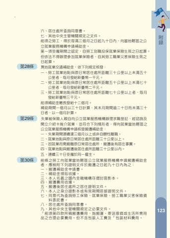 %u9304%u9644%u7b2c%u56db%u7ae0 - %u5176%u4ed6%u4fc3%u9032%u5c31%u696d%u63aa%u65bd%u7b2c%u4e00%u7bc0%u2502%u88dc%u52a9%u4ea4%u901a%u8207%u642c%u9077%u53ca%u79df%u5c4b%u8cbb%u7528%u7b2c22%u689d %u3000%u5931%u696d%u88ab%u4fdd%u96aa%u4eba%u89aa%u81ea%u5411%u516c%u7acb%u5c31%u696d%u670d%u52d9%u6a5f%u69cb%u8fa6%u7406%u6c42%u8077%u767b%u8a18%uff0c%u7d93%u516c%u7acb%u5c31%u696d%u670d%u52d9%u6a5f%u69cb%u8aee%u8a62%u53ca%u958b%u7acb%u4ecb%u7d39%u5361%u63a8%u4ecb%u5c31%u696d%uff0c%u6709%u4e0b%u5217%u60c5%u5f62%u4e4b%u4e00%u8005%uff0c%u5f97%u767c%u7d66%u6c42%u8077%u4ea4%u901a%u88dc%u52a9%u91d1%uff1a%u4e00%u3001%u5176%u63a8%u4ecb%u5730%u9ede%u8207%u65e5%u5e38%u5c45%u4f4f%u8655%u6240%u8ddd%u96e2%u4e09%u5341%u516c%u91cc%u4ee5%u4e0a%u3002%u4e8c%u3001%u70ba%u4f4e%u6536%u5165%u6236%u53ca%u4e2d%u4f4e%u6536%u5165%u6236%u3002%u7b2c23%u689d %u3000%u524d%u689d%u4e4b%u52de%u5de5%u7533%u8acb%u6c42%u8077%u4ea4%u901a%u88dc%u52a9%u91d1%uff0c%u61c9%u6aa2%u9644%u4e0b%u5217%u6587%u4ef6%uff1a%u4e00%u3001%u88dc%u52a9%u91d1%u9818%u53d6%u6536%u64da%u3002%u4e8c%u3001%u5176%u4ed6%u4e2d%u592e%u4e3b%u7ba1%u6a5f%u95dc%u898f%u5b9a%u4e4b%u6587%u4ef6%u3002%u4ee5%u4f4e%u6536%u5165%u6236%u53ca%u4e2d%u4f4e%u6536%u5165%u6236%u8eab%u5206%u7533%u8acb%u8005%uff0c%u9664%u6aa2%u9644%u524d%u9805%u898f%u5b9a%u6587%u4ef6%u5916%uff0c%u4e26%u61c9%u6aa2%u9644%u4f4e%u6536%u5165%u6236%u6216%u4e2d%u4f4e%u6536%u5165%u6236%u8b49%u660e%u6587%u4ef6%u5f71%u672c%u3002%u7b2c24%u689d %u3000%u7b2c%u4e8c%u5341%u4e8c%u689d%u88dc%u52a9%u91d1%uff0c%u6bcf%u4eba%u6bcf%u6b21%u5f97%u767c%u7d66%u65b0%u81fa%u5e63%u4e94%u767e%u5143%u3002%u4f46%u60c5%u5f62%u7279%u6b8a%u8005%uff0c%u5f97%u65bc%u65b0%u81fa%u5e63%u4e00%u5343%u4e8c%u767e%u4e94%u5341%u5143%u5167%u6838%u5be6%u767c%u7d66%u3002%u6bcf%u4eba%u6bcf%u5e74%u5ea6%u5408%u4f75%u9818%u53d6%u524d%u9805%u88dc%u52a9%u91d1%u53ca%u4f9d%u5c31%u696d%u4fc3%u9032%u6d25%u8cbc%u5be6%u65bd%u8fa6%u6cd5%u9818%u53d6%u4e4b%u6c42%u8077%u4ea4%u901a%u88dc%u52a9%u91d1%uff0c%u4ee5%u56db%u6b21%u70ba%u9650%u3002%u7b2c25%u689d %u3000%u9818%u53d6%u7b2c%u4e8c%u5341%u4e8c%u689d%u88dc%u52a9%u91d1%u8005%uff0c%u61c9%u65bc%u63a8%u4ecb%u5c31%u696d%u4e4b%u6b21%u65e5%u8d77%u4e03%u65e5%u5167%uff0c%u586b%u5177%u63a8%u4ecb%u5c31%u696d%u60c5%u5f62%u56de%u8986%u5361%u901a%u77e5%u516c%u7acb%u5c31%u696d%u670d%u52d9%u6a5f%u69cb%uff0c%u903e%u671f%u672a%u901a%u77e5%u8005%uff0c%u7576%u5e74%u5ea6%u4e0d%u518d%u767c%u7d66%u3002%u7b2c26%u689d %u3000%u5931%u696d%u88ab%u4fdd%u96aa%u4eba%u89aa%u81ea%u5411%u516c%u7acb%u5c31%u696d%u670d%u52d9%u6a5f%u69cb%u8fa6%u7406%u6c42%u8077%u767b%u8a18%uff0c%u7d93%u8aee%u8a62%u53ca%u958b%u7acb%u4ecb%u7d39%u5361%u63a8%u4ecb%u5c31%u696d%uff0c%u4e26%u7b26%u5408%u4e0b%u5217%u60c5%u5f62%u8005%uff0c%u5f97%u5411%u5c31%u696d%u7576%u5730%u8f44%u5340%u4e4b%u516c%u7acb%u5c31%u696d%u670d%u52d9%u6a5f%u69cb%u7533%u8acb%u6838%u767c%u7570%u5730%u5c31%u696d%u4ea4%u901a%u88dc%u52a9%u91d1%uff1a%u4e00%u3001%u5931%u696d%u671f%u9593%u9023%u7e8c%u9054%u4e09%u500b%u6708%u4ee5%u4e0a%u6216%u975e%u81ea%u9858%u6027%u96e2%u8077%u3002%u4e8c%u3001%u5c31%u696d%u5730%u9ede%u8207%u539f%u65e5%u5e38%u5c45%u4f4f%u8655%u6240%u8ddd%u96e2%u4e09%u5341%u516c%u91cc%u4ee5%u4e0a%u3002%u4e09%u3001%u56e0%u5c31%u696d%u6709%u4ea4%u901a%u5f80%u8fd4%u4e4b%u4e8b%u5be6%u3002%u56db%u3001%u9023%u7e8c%u4e09%u5341%u65e5%u53d7%u50f1%u65bc%u540c%u4e00%u96c7%u4e3b%u3002%u7b2c27%u689d %u3000%u524d%u689d%u4e4b%u52de%u5de5%u65bc%u9023%u7e8c%u53d7%u50f1%u6eff%u4e09%u5341%u65e5%u4e4b%u65e5%u8d77%u4e5d%u5341%u65e5%u5167%uff0c%u5f97%u5411%u5c31%u696d%u7576%u5730%u3000%u8f44%u5340%u516c%u7acb%u5c31%u696d%u670d%u52d9%u6a5f%u69cb%u7533%u8acb%u7570%u5730%u5c31%u696d%u4ea4%u901a%u88dc%u52a9%u91d1%uff0c%u4e26%u61c9%u6aa2%u9644%u4e0b%u5217%u3000%u8b49%u660e%u6587%u4ef6%uff1a%u3000%u4e00%u3001%u7570%u5730%u5c31%u696d%u4ea4%u901a%u88dc%u52a9%u91d1%u7533%u8acb%u66f8%u3002%u3000%u4e8c%u3001%u88dc%u52a9%u91d1%u9818%u53d6%u6536%u64da%u3002%u3000%u4e09%u3001%u672c%u4eba%u540d%u7fa9%u4e4b%u570b%u5167%u91d1%u878d%u6a5f%u69cb%u5b58%u647a%u5c01%u9762%u5f71%u672c%u3002%u3000%u56db%u3001%u672c%u4eba%u4e4b%u8eab%u5206%u8b49%u5f71%u672c%u6216%u6709%u6548%u671f%u9593%u5c45%u7559%u8b49%u660e%u6587%u4ef6%u3002%u3000%u4e94%u3001%u540c%u610f%u4ee3%u70ba%u67e5%u8a62%u52de%u5de5%u4fdd%u96aa%u3001%u5c31%u696d%u4fdd%u96aa%u3001%u52de%u5de5%u8077%u696d%u707d%u5bb3%u4fdd%u96aa%u8cc7%u6599%u3000%u3000%u3000%u59d4%u8a17%u66f8%u3002099%u9304%u9644%u516d%u3001%u5c45%u4f4f%u8655%u6240%u67e5%u8a62%u540c%u610f%u66f8%u3002%u4e03%u3001%u5176%u4ed6%u4e2d%u592e%u4e3b%u7ba1%u6a5f%u95dc%u898f%u5b9a%u4e4b%u6587%u4ef6%u3002%u524d%u9805%u4e4b%u52de%u5de5%uff0c%u5f97%u65bc%u6bcf%u6eff%u4e09%u500b%u6708%u4e4b%u65e5%u8d77%u4e5d%u5341%u65e5%u5167%uff0c%u5411%u7576%u5730%u8f44%u5340%u4e4b%u516c%u7acb%u5c31%u696d%u670d%u52d9%u6a5f%u69cb%u7533%u8acb%u88dc%u52a9%u91d1%u3002%u7b2c%u4e00%u9805%u53d7%u50f1%u671f%u9593%u4e4b%u8a8d%u5b9a%uff0c%u81ea%u52de%u5de5%u5230%u8077%u6295%u4fdd%u5c31%u696d%u4fdd%u96aa%u751f%u6548%u4e4b%u65e5%u8d77%u7b97%u3002%u4f46%u4f9d%u6cd5%u4e0d%u5f97%u8fa6%u7406%u53c3%u52a0%u5c31%u696d%u4fdd%u96aa%u8005%uff0c%u81ea%u5176%u52de%u5de5%u8077%u696d%u707d%u5bb3%u4fdd%u96aa%u751f%u6548%u4e4b%u65e5%u8d77%u7b97%u3002%u7b2c28%u689d %u3000%u7570%u5730%u5c31%u696d%u4ea4%u901a%u88dc%u52a9%u91d1%uff0c%u4f9d%u4e0b%u5217%u898f%u5b9a%u6838%u767c%uff1a%u4e00%u3001%u52de%u5de5%u5c31%u696d%u5730%u9ede%u8207%u539f%u65e5%u5e38%u5c45%u4f4f%u8655%u6240%u8ddd%u96e2%u4e09%u5341%u516c%u91cc%u4ee5%u4e0a%u672a%u6eff%u4e94%u5341%u516c%u91cc%u8005%uff0c%u6bcf%u6708%u767c%u7d66%u65b0%u81fa%u5e63%u4e00%u5343%u5143%u3002%u4e8c%u3001%u52de%u5de5%u5c31%u696d%u5730%u9ede%u8207%u539f%u65e5%u5e38%u5c45%u4f4f%u8655%u6240%u8ddd%u96e2%u4e94%u5341%u516c%u91cc%u4ee5%u4e0a%u672a%u6eff%u4e03%u5341%u516c%u91cc%u8005%uff0c%u6bcf%u6708%u767c%u7d66%u65b0%u81fa%u5e63%u4e8c%u5343%u5143%u3002%u4e09%u3001%u52de%u5de5%u5c31%u696d%u5730%u9ede%u8207%u539f%u65e5%u5e38%u5c45%u4f4f%u8655%u6240%u8ddd%u96e2%u4e03%u5341%u516c%u91cc%u4ee5%u4e0a%u8005%uff0c%u6bcf%u6708%u767c%u7d66%u65b0%u81fa%u5
