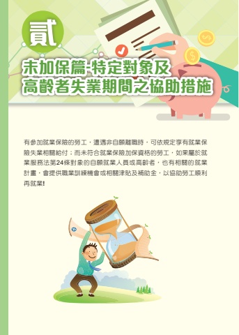%u672a%u52a0%u4fdd%u7bc7-%u7279%u5b9a%u5c0d%u8c61%u53ca%u9ad8%u9f61%u8005%u5931%u696d%u671f%u9593%u4e4b%u5354%u52a9%u63aa%u65bd%u6709%u53c3%u52a0%u5c31%u696d%u4fdd%u96aa%u7684%u52de%u5de5%uff0c%u906d%u9047%u975e%u81ea%u9858%u96e2%u8077%u6642%uff0c%u53ef%u4f9d%u898f%u5b9a%u4eab%u6709%u5c31%u696d%u4fdd%u96aa%u5931%u696d%u76f8%u95dc%u7d66%u4ed8%uff1b%u800c%u672a%u7b26%u5408%u5c31%u696d%u4fdd%u96aa%u52a0%u4fdd%u8cc7%u683c%u7684%u52de%u5de5%uff0c%u5982%u679c%u5c6c%u65bc%u5c31%u696d%u670d%u52d9%u6cd5%u7b2c24%u689d%u5c0d%u8c61%u7684%u81ea%u9858%u5c31%u696d%u4eba%u54e1%u6216%u9ad8%u9f61%u8005%uff0c%u4e5f%u6709%u76f8%u95dc%u7684%u5c31%u696d%u8a08%u756b%uff0c%u6703%u63d0%u4f9b%u8077%u696d%u8a13%u7df4%u6a5f%u6703%u6216%u76f8%u95dc%u6d25%u8cbc%u53ca%u88dc%u52a9%u91d1%uff0c%u4ee5%u5354%u52a9%u52de%u5de5%u9806%u5229%u518d%u5c31%u696d!%u8077%u696d%u707d%u5bb3%u5931%u80fd%u52de%u5de5%uff08%u7b2c77-81%u9801%uff09 %u25cb%u25cb%u25cb %u25cb %u25cb %u25cb %u25cb%u4e2d%u9ad8%u9f61%u8005%uff08%u7b2c38-41%u9801%uff09 %u25cb%u25cb%u25cb %u25cb %u25cb %u25cb %u25cb%u8eab%u5fc3%u969c%u7919%u8005%uff08%u7b2c44-47%u9801%uff09 %u25cb%u25cb%u25cb %u25cb %u25cb %u25cb %u25cb%u539f%u4f4f%u6c11%uff08%u7b2c49-52%u9801%uff09 %u25cb%u25cb%u25cb %u25cb %u25cb %u25cb %u25cb%u4f4e%u6536%u5165%u6236%u6216%u4e2d%u4f4e%u6536%u5165%u6236%u4e2d%u6709%u5de5%u4f5c%u80fd%u529b%u8005%uff08%u7b2c53-56%u9801%uff09%u25cb%u25cb%u25cb %u25cb %u25cb %u25cb %u25cb%u9577%u671f%u5931%u696d%u8005%uff08%u7b2c57-60%u9801%uff09 %u25cb%u25cb%u25cb %u25cb %u25cb %u25cb %u25cb%u4e8c%u5ea6%u5c31%u696d%u5a66%u5973%uff08%u7b2c61-65%u9801%uff09 %u25cb%u25cb%u25cb %u25cb %u25cb %u25cb %u25cb%u5bb6%u5ead%u66b4%u529b%u88ab%u5bb3%u4eba%uff08%u7b2c66-69%u9801%uff09 %u25cb%u25cb%u25cb %u25cb %u25cb %u25cb %u25cb%u66f4%u751f%u53d7%u4fdd%u8b77%u4eba%u5341%u4e94%u6b72%u4ee5%u4e0a%u672a%u6eff%u5341%u516b%u6b72%u4e4b%u672a%u5c31%u5b78%u672a%u5c31%u696d%u5c11%u5e74%uff08%u7b2c70-73%u9801%uff09%uff08%u7b2c74-76%u9801%uff09%u25cb%u25cb%u25cb %u25cb %u25cb %u25cb %u25cb%u25cb%u25cb%u25cb %u25cb %u2573 %u25cb %u25cb%u25cb%u25cb%u25cb %u25cb %u2573 %u25cb %u25cb%u25ce%u672c%u8868%u5c07%u52de%u5de5%u670b%u53cb%u53ef%u7533%u8acb%u7684%u76f8%u95dc%u8cc7%u8a0a%u6574%u7406%u51fa%u4f86%uff0c%u60df%u6700%u7d42%u7684%u7533%u8acb%u7d50%u679c%uff0c%u4ecd%u9808%u7d93%u516c%u7acb%u5c31%u696d%u670d%u52d9%u6a5f%u69cb%u4f9d%u500b%u6848%u4e8b%u5be6%u5be9%u6838%u8a8d%u5b9a%u3002%u9ad8%u9f61%u8005%uff08%u7b2c38-41%u9801%uff09 %u25cb%u25cb%u25cb %u25cb %u25cb %u25cb %u25cb031%u7bc7%u4fdd%u52a0%u672a%u52a9%u5354%u696d%u5c31%u4e4b%u9593%u671f%u696d%u5931%u8c61%u5c0d%u5b9a%u7279%u7279%u5b9a%u5c0d%u8c61%u5931%u696d%u671f%u9593%u7684%u7d93%u6fdf%u5354%u52a9%u63aa%u65bd%u4e00%u89bd%u8868%uff08%u52de%u5de5%u7bc7%uff09 %u9805%u76ee%u3000%u3000%u5c0d%u8c61%u8077%u5834 %u5b78%u7fd2 %u53ca%u518d %u9069%u61c9 %u8a08%u756b%u6c42%u8077 %u4ea4%u901a %u88dc%u52a9 %u91d1%u8077%u696d %u8a13%u7df4 %u751f%u6d3b %u6d25%u8cbc%u81e8 %u6642 %u5de5 %u4f5c %u6d25 %u8cbc%u5fae%u578b%u5275%u696d%u8cb8%u6b3e%u53ca%u5275%u696d%u8aee%u8a62%u8f14%u5c0e%u670d%u52d9%u88dc%u52a9%u6280%u8853%u58eb%u6280%u80fd%u6aa2%u5b9a%u5831%u540d%u8cbb%u53ca%u8b49%u7167%u8cbb%u7528%u591a%u5143 %u5c31%u696d %u958b%u767c %u65b9%u6848%u7368%u529b%u8ca0%u64d4%u5bb6%u8a08%u8005%uff08%u7b2c33-37%u9801%uff09 %u25cb%u25cb%u25cb %u25cb %u25cb %u25cb %u25cb%u76f4%u8f44%u5e02%u3001%u7e23%uff08%u5e02%uff09%u653f%u5e9c%u5217%u518a%u8f14%u5c0e%u4e4b%u8857%u53cb%uff08%u7b2c82-85%u9801%uff09