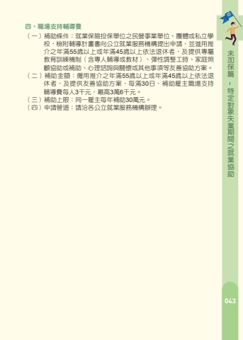 %u7bc7%u4fdd%u52a0%u672a%u52a9%u5354%u696d%u5c31%u4e4b%u9593%u671f%u696d%u5931%u8c61%u5c0d%u5b9a%u7279%u96c7%u4e3b%u7bc7%u4e00%u3001%u8077%u5834%u5b78%u7fd2%u53ca%u518d%u9069%u61c9%u8a08%u756b%u4e09%u3001%u50f1%u7528%u734e%u52a9%u63aa%u65bd%u6309%u6708%u8a08%u916c%u8005%uff1a%u6bcf%u50f1%u75281%u4eba%uff0c%u6bcf%u6708%u6700%u9ad8%u767c%u7d66%u50f1%u7528%u4e2d%u9ad8%u9f61%u8005%u65b0%u81fa%u5e6313,000%u5143%uff0c%u50f1%u7528%u9ad8%u9f61%u8005%u65b0%u81fa%u5e6315,000%u5143%u3002%u4ee5%u5176%u4ed6%u65b9%u5f0f%u7d66%u4ed8%u5de5%u8cc7%u8005%uff1a%u6bcf%u50f1%u75281%u4eba%uff0c%u6bcf%u5c0f%u6642%u767c%u7d66%u50f1%u7528%u4e2d%u9ad8%u9f61%u8005%u65b0%u81fa%u5e6370%u5143%uff0c%u6bcf%u6708%u6700%u9ad8%u767c%u7d66%u65b0%u81fa%u5e6313,000%u5143; %u6bcf%u5c0f%u6642%u767c%u7d66%u50f1%u7528%u9ad8%u9f61%u8005%u65b0%u81fa%u5e6380%u5143%uff0c%u6bcf%u6708%u6700%u9ad8%u767c%u7d66%u65b0%u81fa%u5e6315,000%u5143%u3002%uff08%u4e09%uff09%u88dc%u52a9%u671f%u9593%uff1a%u6700%u9577%u4ee53%u500b%u6708%u70ba%u9650%uff0c%u9ad8%u9f61%u8005%u7d93%u8a55%u4f30%u5f97%u5ef6%u9577%u81f36%u500b%u6708%u3002%uff08%u56db%uff09%u7533%u8acb%u7ba1%uff08%u4e00%uff09%u88dc%u52a9%u689d%u4ef6%uff1a%u96c7%u4e3b%u4ee5%u4e0d%u5b9a%u671f%u5951%u7d04%u6216%u4e00%u5e74%u4ee5%u4e0a%u4e4b%u5b9a%u671f%u5951%u7d04%uff0c%u50f1%u7528%u7531%u516c%u7acb%u5c31%u696d%u670d%u52d9%u6a5f%u69cb%u767c%u7d66%u50f1%u7528%u734e%u52a9%u63a8%u4ecb%u5361%u4e4b%u4e2d%u9ad8%u9f61%u8005%u53ca%u9ad8%u9f61%u8005%uff0c%u9023%u7e8c%u6eff30%u65e5%u4e14%u7b26%u5408%u76f8%u95dc%u898f%u5b9a%uff0c%u767c%u7d66%u50f1%u7528%u734e%u52a9%u3002%uff08%u4e00%uff09%u88dc%u52a9%u689d%u4ef6%uff1a%u4f9d%u64da%u6240%u9032%u7528%u8077%u5834%u5b78%u7fd2%u53ca%u518d%u9069%u61c9%u4eba%u6578%uff0c%u88dc%u52a9%u884c%u653f%u7ba1%u7406%u53ca%u8f14%u5c0e%u8cbb%u3002%uff08%u4e8c%uff09%u88dc%u52a9%u91d1%u984d%uff1a%u4ee5%u5be6%u969b%u6838%u767c%u8077%u5834%u5b78%u7fd2%u53ca%u518d%u9069%u61c9%u6d25%u8cbc%u91d1%u984d%u4e4b30%%u6838%u7d66%u3002%uff08%u4e8c%uff09%u88dc%u52a9%u91d1%u984d%uff1a%uff08%u4e09%uff09%u88dc%u52a9%u671f%u9593%uff1a%u6700%u9577%u4ee512%u500b%u6708%u70ba%u9650%u3002%uff08%u56db%uff09%u7533%u8acb%u7ba1%u9053%uff1a%u8acb%u6d3d%u5404%u516c%u7acb%u5c31%u696d%u670d%u52d9%u6a5f%u69cb%u8fa6%u7406%u3002%u9053%uff1a%u8acb%u6d3d%u5404%u516c%u7acb%u5c31%u696d%u670d%u52d9%u6a5f%u69cb%u8fa6%u7406%u3002%u4e8c%u3001%u4e2d%u9ad8%u9f61%u8005%u8077%u52d9%u518d%u8a2d%u8a08%uff08%u4e00%uff09%u88dc%u52a9%u689d%u4ef6%uff1a%u96c7%u4e3b%u6709%u610f%u9858%u63d0%u4f9b%u4e2d%u9ad8%u9f61%u53ca%u9ad8%u9f61%u8005%u5c31%u696d%u6a5f%u6703%uff0c%u9032%u884c%u62db%u52df%u50f1%u7528%uff0c%u6216%u70ba%u5354%u52a9%u5728%u8077%u4e2d%u9ad8%u9f61%u53ca%u9ad8%u9f61%u8005%u52de%u5de5%uff0c%u6e1b%u7de9%u5de5%u4f5c%u969c%u7919%uff0c%u63d0%u5347%u5de5%u4f5c%u6548%u80fd%uff0c%u5f97%u63d0%u51fa%u7533%u8acb%u3002%uff08%u4e8c%uff09%u88dc%u52a9%u9805%u76ee%uff1a 1%u3001%u6539%u5584%u5de5%u4f5c%u8a2d%u5099%u6216%u6a5f%u5177%uff1a%u70ba%u63d0%u9ad8%u52de%u5de5%u5de5%u4f5c%u6548%u80fd%uff0c%u589e%u9032%u5176%u751f%u7522 %u3000%u529b%uff0c%u6240%u9032%u884c%u5de5%u4f5c%u8a2d%u5099%u6216%u6a5f%u5177%u4e4b%u6539%u5584%u3002 2%u3001%u63d0%u4f9b%u5c31%u696d%u8f14%u5177%uff1a%u6392%u9664%u52de%u5de5%u5de5%u4f5c%u969c%u7919%uff0c%u589e%u52a0%u3001%u7dad%u6301%u3001%u6539%u5584%u4e2d %u9ad8%u9f61%u52de%u5de5%u5c31%u696d%u80fd%u529b%u4e4b%u8f14%u52a9%u5668%u5177%u3002 3%u3001%u6539%u5584%u5de5%u4f5c%u689d%u4ef6%uff1a%u6307%u70ba%u6539%u5584%u52de%u5de5%u5de5%u4f5c%u72c0%u6cc1%uff0c%u63d0%u4f9b%u5fc5%u8981%u4e4b%u5de5 %u4f5c%u5354%u52a9%uff0c%u5982%u8077%u5834%u9069%u61c9%u8f14%u5c0e%u3001%u5f48%u6027%u5de5%u4f5c%u5b89%u6392%u7b49%u3002 4%u3001%u8abf%u6574%u5de5%u4f5c%u65b9%u6cd5%uff1a%u900f%u904e%u8a55%u91cf%u5206%u6790%u53ca%u8a13%u7df4%uff0c%u4f9d%u52de%u5de5%u7279%u6027%uff0c%u5206%u6d3e%u3000%u9069%u7576%u5de5%u4f5c%uff0c%u5982%u5de5%u4f5c%u91cd%u7d44%u3001%u8abf%u6d3e%u5176%u4ed6%u54e1%u5de5%u5171%u540c%u5408%u4f5c%u3001%u7c21%u5316%u6d41%u3000%u7a0b%u3001%u8abf%u6574%u5de5%u4f5c%u5834%u6240%u7b49%u3002 5%u3001%u6539%u5584%u8077%u5834%u5de5%u4f5c%u74b0%u5883%uff1a%u70ba%u7a69%u5b9a%u52de%u5de5%u5c31%u696d%uff0c%u6240%u9032%u884c%u8207%u5de5%u4f5c%u5834 %u6240%u74b0%u5883%u6709%u95dc%u4e4b%u6539%u5584%u3002%uff08%u4e09%uff09%u88dc%u52a9%u91d1%u984d%uff1a%u4f9d%u96c7%u4e3b%u5c07%u9032%u7528%u6216%u5df2%u50f1%u7528%u4e4b%u4e2d%u9ad8%u9f61%u53ca%u9ad8%u9f61%u52de%u5de5%uff0c%u6bcf%u4eba%u6bcf%u5e74%u88dc%u52a9%u91d1%u984d%u6700%u9ad8%u4ee510%u842c%u5143%u70ba%u9650%u3002%uff08%u56db%uff09%u7533%u8acb%u7ba1%u9053%uff1a%u8acb%u6d3d%u5404%u516c%u7acb%u5c31%u696d%u670d%u52d9%u6a5f%u69cb%u8fa6%u7406%u3002%u7bc7%u4fdd%u52a0%u672a%u52a9%u5354%u696d%u5c31%u4e4b%u9593%u671f%u696d%u5931%u8c61%u5c0d%u5b9a%u7279%u56db%u3001%u8077%u5834%u652f%u6301%u8f14%u5c0e%u8cbb%uff08%u4e00%uff09%u88dc%u52a9%u689d%u4ef6%uff1a%u5c31%u696d%u4fdd%u96aa%u6295%u4fdd%u55ae%u4f4d%u4e4b%u6c11%u71df%u4e8b%u696d%u55ae%u4f4d%u3001%u5718%u9ad4%u6216%u79c1%u7acb%u5b78%u6821%uff0c%u6aa2%u9644%u8f14%u5c0e%u8a08%u756b%u66f8%u5411%u516c%u7acb%u5c31%u696d%u670d%u52d9%u6a5f%u69cb%u63d0%u51fa%u7533%u8acb%uff0c%u4e26%u9032%u7528%u63a8%u4ecb%u4e4b%u5e74%u6eff55%u6b72%u4ee5%u4e0a%u6216%u5e74%u6eff45%u6b72%u4ee5%u4e0a%u4f9d%u6cd5%u9000%u4f11%u8005%uff0c%u53ca%u63d0%u4f9b%u5c08%u5c6c%u6559%u80b2%u8a13%u7df4%u6a5f%u5236%uff08%u542b%u5c08%u4eba%u8f14%u5c0e%u6216%u6559%u6750%uff09%u3001%u5f48%u6027%u8abf%u6574%u5de5%u6642%u3001%u5bb6%u5ead%u7167%u9867%u5354%u52a9%u6216%u88dc%u52a9%u3001%u5fc3%u7406%u8aee%u8a62%u8207%u95dc%u61f7%u6216%u5176%u4ed6%u4e8b%u9805%u7b49%u53cb%u5584%u5354%u52a9%u65b9%u6848%u3002%uff08%u4e8c%uff09%u88dc%u52a9%u91d1%u984d%uff1a%u50f1%u7528%u63a8%u4ecb%u4e4b%u5e74%u6eff55%u6b72%u4ee5%u4e0a%u6216%u5e74%u6eff45%u6b72%u4ee5%u4e0a%u4f9d%u6cd5%u9000%u4f11%u8005%uff0c%u53ca%u63d0%u4f9b%u53cb%u5584%u5354%u52a9%u65b9%u6848%uff0c%u6bcf%u6eff30%u65e5%uff0c%u88dc%u52a9%u96c7%u4e3b%u8077%u5834%u652f%u6301%u8f14%u5c0e%u8cbb%u6bcf%u4eba3%u5343%u5143%uff0c%u6700%u9ad83%u842c6%u5343%u