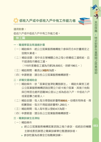 %u7bc7%u4fdd%u52a0%u672a%u52a9%u5354%u696d%u5c31%u4e4b%u9593%u671f%u696d%u5931%u8c61%u5c0d%u5b9a%u7279%u4e03%u3001%u591a%u5143%u5c31%u696d%u958b%u767c%u65b9%u6848%uff08%u4e00%uff09%u88dc%u52a9%u689d%u4ef6%uff1a%u7d93%u516c%u7acb%u5c31%u696d%u670d%u52d9%u6a5f%u69cb%u8aee%u8a62%u5b89%u6392%u5f8c%uff0c%u88ab%u63a8%u4ecb%u53c3%u8207%u591a%u5143%u5c31%u696d%u958b%u767c%u65b9%u6848%u8a08%u756b%u7684%u975e%u81ea%u9858%u6027%u5931%u696d%u8005%u3001%u5f31%u52e2%u65cf%u7fa4%u53ca%u5176%u4ed6%u7d93%u672c%u90e8%u6307%u5b9a%u4e4b%u5c0d%u8c61%u70ba%u9650%u3002%uff08%u4e09%uff09%u88dc%u52a9%u671f%u9593%uff1a%u6700%u957712%u500b%u6708%u70ba%u9650%u3002%uff08%u56db%uff09%u7533%u8acb%u7ba1%u9053%uff1a%u8acb%u6d3d%u5404%u516c%u7acb%u5c31%u696d%u670d%u52d9%u6a5f%u69cb%u8fa6%u7406%u3002%u96c7%u4e3b%u7bc7%u4e00%u3001%u8077%u5834%u5b78%u7fd2%u53ca%u518d%u9069%u61c9%u8a08%u756b%u4e8c%u3001%u50f1%u7528%u734e%u52a9%u63aa%u65bd%uff08%u4e00%uff09%uff08%u4e8c%uff09%u88dc%u52a9%u91d1%u984d%uff1a%uff08%u4e09%uff09%u88dc%u52a9%u671f%u9593%uff1a%u6700%u9577%u4ee512%u500b%u6708%u70ba%u9650%u3002%uff08%u56db%uff09%u7533%u8acb%u7ba1%u9053%uff1a%u8acb%u6d3d%u5404%u516c%u7acb%u5c31%u696d%u670d%u52d9%u6a5f%u69cb%u8fa6%u7406%u3002%u96c7%u4e3b%u4ee5%u4e0d%u5b9a%u671f%u5951%u7d04%u6216%u4e00%u5e74%u4ee5%u4e0a%u4e4b%u5b9a%u671f%u5951%u7d04%uff0c%u50f1%u7528%u7531%u516c%u7acb%u5c31%u696d%u670d%u52d9%u6a5f%u95dc%u767c%u7d66%u50f1%u7528%u734e%u52a9%u63a8%u4ecb%u5361%u4e4b%u539f%u4f4f%u6c11%uff0c%u9023%u7e8c%u6eff30%u65e5%u4e14%u7b26%u5408%u76f8%u95dc%u898f%u5b9a%uff0c%u767c%u7d66%u50f1%u7528%u734e%u52a9%u3002%u6309%u6708%u8a08%u916c%u8005%uff1a%u6bcf%u50f1%u75281%u4eba%uff0c%u6bcf%u6708%u6700%u9ad8%u767c%u7d66%u65b0%u81fa%u5e6311,000%u5143%u3002%u4ee5%u5176%u4ed6%u65b9%u5f0f%u7d66%u4ed8%u5de5%u8cc7%u8005%uff1a%u6bcf%u50f1%u75281%u4eba%uff0c%u6bcf%u5c0f%u6642%u767c%u7d66%u65b0%u81fa%u5e6360%u5143%uff0c%u6bcf%u6708%u6700%u9ad8%u767c%u7d66%u65b0%u81fa%u5e6311,000%u5143%u3002%uff08%u4e00%uff09%u88dc%u52a9%u689d%u4ef6%uff1a%u4f9d%u64da%u6240%u9032%u7528%u8077%u5834%u5b78%u7fd2%u53ca%u518d%u9069%u61c9%u4eba%u6578%uff0c%u88dc%u52a9%u884c%u653f%u7ba1%u3000%u3000%u7406%u53ca%u8f14%u5c0e%u8cbb%u3002%uff08%u4e8c%uff09%u88dc%u52a9%u91d1%u984d%uff1a%u4ee5%u5be6%u969b%u6838%u767c%u8077%u5834%u5b78%u7fd2%u53ca%u518d%u9069%u61c9%u6d25%u8cbc%u91d1%u984d%u4e4b%uff08%u4e09%uff09%u88dc%u52a9%u671f%u9593%uff1a%u6700%u9577%u4ee53%u500b%u6708%u70ba%u9650%u3002%uff08%u56db%uff09%u7533%u8acb%u7ba1%u9053%uff1a%u8acb%u6d3d%u5404%u516c%u7acb%u5c31%u696d%u670d%u52d9%u6a5f%u69cb%u8fa6%u7406%u300230%%u6838%u7d66%u3002%uff08%u4e8c%uff09%u88dc%u52a9%u91d1%u984d%uff1a%u4f9d%u5de5%u4f5c%u6027%u8cea%u53ca%u5404%u8077%u52d9%u5de5%u4f5c%u9700%u6c42%uff0c%u6309%u4e2d%u592e%u4e3b%u7ba1%u6a5f%u95dc%u516c%u544a%u4e4b%u6bcf%u5c0f%u6642%u6700%u4f4e%u5de5%u8cc7%u6838%u7d66%uff0c%u4e14%u4e0d%u8d85%u904e%u6bcf%u6708%u6700%u4f4e%u5de5%u8cc7%u3002%uff08115%u5e74%u5ea6%u6700%u4f4e%u5de5%u8cc7%u70ba%u6708%u85aa29,500%u5143%uff0c%u6642%u85aa196%u5143%u3002%uff09%u7bc7%u4fdd%u52a0%u672a%u52a9%u5354%u696d%u5c31%u4e4b%u9593%u671f%u696d%u5931%u8c61%u5c0d%u5b9a%u7279%u4f4e%u6536%u5165%u6236%u6216%u4e2d%u4f4e%u6536%u5165%u6236%u4e2d%u6709%u5de5%u4f5c%u80fd%u529b%u8005%u9069%u7528%u5c0d%u8c61%uff1a%u4f4e%u6536%u5165%u6236%u6216%u4e2d%u4f4e%u6536%u5165%u6236%u4e2d%u6709%u5de5%u4f5c%u80fd%u529b%u8005%u3002%u52de%u5de5%u7bc7%u4e00%u3001%u8077%u5834%u5b78%u7fd2%u53ca%u518d%u9069%u61c9%u8a08%u756b%uff08%u4e00%uff09%u88dc%u52a9%u689d%u4ef6%uff1a%u7d93%u516c%u7acb%u5c31%u696d%u670d%u52d9%u6a5f%u69cb%u63a8%u4ecb%u53c3%u8207%u7b26%u5408%u672c%u8a08%u756b%u898f%u5b9a%u4e4b%u5f31%u52e2%u5931%u696d%u8005%u3002%uff08%u4e8c%uff09%u88dc%u52a9%u91d1%u984d%uff1a%u6309%u4e2d%u592e%u4e3b%u7ba1%u6a5f%u95dc%u516c%u544a%u4e4b%u6bcf%u5c0f%u6642%u6700%u4f4e%u5de5%u8cc7%u6838%u7d66%uff0c%u4e14%u4e0d%u8d85%u904e%u6bcf%u6708%u6700%u4f4e%u5de5%u8cc7%u3002%uff08115%u5e74%u5ea6%u6700%u4f4e%u5de5%u8cc7%u70ba%u6708%u85aa29,500%u5143%uff0c%u6642%u85aa196%u5143%u3002%uff09%uff08%u4e09%uff09%u88dc%u52a9%u671f%u9593%uff1a%u6700%u9577%u4ee53%u500b%u6708%u70ba%u9650%u3002%uff08%u56db%uff09%u7533%u8acb%u7ba1%u9053%uff1a%u8acb%u6d3d%u5404%u516c%u7acb%u5c31%u696d%u670d%u52d9%u6a5f%u69cb%u8fa6%u7406%u3002%u4e8c%u3001%u6c42%u8077%u4ea4%u901a%u88dc%u52a9%u91d1%uff08%u4e00%uff09%u88dc%u52a9%u689d%u4ef6%uff1a%u4f9d%u300c%u5c31%u696d%u4fc3%u9032%u6d25%u8cbc%u5be6%u65bd%u8fa6%u6cd5%u300d%uff0c%u88dc%u52a9%u5931%u696d%u52de%u5de5%u7d93%u516c%u7acb%u5c31%u696d%u670d%u52d9%u6a5f%u69cb%u8aee%u8a62%u4e26%u958b%u7acb%u4ecb%u7d39%u5361%u63a8%u4ecb%u5c31%u696d%uff0c%u5176%u63a8%u4ecb%u5730%u9ede%u8207%u65e5%u5e38%u5c45%u4f4f%u8655%u6240%u8ddd%u96e230%u516c%u91cc%u4ee5%u4e0a%u6216%u70ba%u4f4e%u6536%u5165%u6236%u3001%u4e2d%u4f4e%u6536%u5165%u6236%u6216%u5bb6%u5ead%u66b4%u529b%u88ab%u5bb3%u4eba%u3002%uff08%u4e8c%uff09%u88dc%u52a9%u91d1%u984d%uff1a%u6bcf%u4eba%u6bcf%u6b21%u5f97%u767c%u7d66%u65b0%u81fa%u5e63500%u5143%u3002%u4f46%u60c5%u5f62%u7279%u6b8a%u8005%uff0c%u5f97%u3000%u3000%u3000%u6838%u5be6%u767c%u7d66%uff0c%u6bcf%u6b21%u4e0d%u5f97%u8d85%u904e%u65b0%u81fa%u5e631,250%u5143%u3002%uff08%u4e09%uff09%u88dc%u52a9%u671f%u9593%uff1a%u6bcf%u4eba%u6bcf%u5e74%u5ea6%u4ee5%u767c%u7d664%u6b21%u70ba%u9650%u3002%uff08%u56db%uff09%u7533%u8acb%u7ba1%u9053%uff1a%u8acb%u6d3d%u5404%u516c%u7acb%u5c31%u696d%u670d%u52d9%u6a5f%u69cb%u8fa6%u7406%u3002%u4e09%u3001%u8077%u696d%u8a13%u7df4%u751f%u6d3b%u6d25%u8cbc%uff08%u4e00%uff09%u88dc%u52a9%u689d%u4ef6 %u7d93%u516c%u7acb%u5c31%u696d%u670d%u52d9%u6a5f%u69cb%u5c31%u696d%u8aee%u8a62%u4e4b%u63a8%u4ecb%u53c3%u8a13%uff0c%u6216%u7d93%u653f%u5e9c%u6a5f%u95dc %u4e3b%u8fa6%u6216%u59d4%u8a17%u8fa6%u7406%u4e4b%u8077%u696d%u8a13%u7df4%u55ae%u4f4d%u7504%u9078%u9304%u8a13%u8005%u3002%u53c3%u8a13%u6027%u8cea%u70ba%u5404%u985e%u5168%u65e5%u5236%u8077%u696d%u8a13%u7df4%u3002