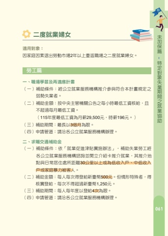 %u7bc7%u4fdd%u52a0%u672a%u52a9%u5354%u696d%u5c31%u4e4b%u9593%u671f%u696d%u5931%u8c61%u5c0d%u5b9a%u7279%u4e03%u3001%u591a%u5143%u5c31%u696d%u958b%u767c%u65b9%u6848%uff08%u4e00%uff09%u88dc%u52a9%u689d%u4ef6%uff1a%u7d93%u516c%u7acb%u5c31%u696d%u670d%u52d9%u6a5f%u69cb%u5c31%u696d%u8aee%u8a62%u5b89%u6392%u5f8c%uff0c%u88ab%u63a8%u4ecb%u53c3%u8207%u591a%u5143%u5c31%u696d%u958b%u767c%u65b9%u6848%u8a08%u756b%u7684%u975e%u81ea%u9858%u6027%u5931%u696d%u8005%u3001%u5f31%u52e2%u65cf%u7fa4%u53ca%u5176%u4ed6%u7d93%u672c%u90e8%u6307%u5b9a%u4e4b%u5c0d%u8c61%u70ba%u9650%u3002%uff08%u4e8c%uff09%u88dc%u52a9%u91d1%u984d%uff1a%u4f9d%u5de5%u4f5c%u6027%u8cea%u53ca%u5404%u8077%u52d9%u5de5%u4f5c%u9700%u6c42%uff0c%u6309%u4e2d%u592e%u4e3b%u7ba1%u6a5f%u95dc%u3000%u3000%u3000%u516c%u544a%u4e4b%u6bcf%u5c0f%u6642%u6700%u4f4e%u5de5%u8cc7%u6838%u7d66%uff0c%u4e14%u4e0d%u8d85%u904e%u6bcf%u6708%u6700%u4f4e%u5de5%u8cc7%u3002%u3000%u3000%u3000%uff08115%u5e74%u5ea6%u6700%u4f4e%u5de5%u8cc7%u70ba%u6708%u85aa29,500%u5143%uff0c%u6642%u85aa196%u5143%u3002%uff09%uff08%u4e09%uff09%u88dc%u52a9%u671f%u9593%uff1a%u6700%u957712%u500b%u6708%u70ba%u9650%u3002%uff08%u56db%uff09%u7533%u8acb%u7ba1%u9053%uff1a%u8acb%u6d3d%u5404%u516c%u7acb%u5c31%u696d%u670d%u52d9%u6a5f%u69cb%u8fa6%u7406%u3002%u96c7%u4e3b%u7bc7%u4e00%u3001%u8077%u5834%u5b78%u7fd2%u53ca%u518d%u9069%u61c9%u8a08%u756b%uff08%u4e09%uff09%u88dc%u52a9%u671f%u9593%uff1a%u6700%u9577%u4ee53%u500b%u6708%u70ba%u9650%u3002%uff08%u56db%uff09%u7533%u8acb%u7ba1%u9053%uff1a%u8acb%u6d3d%u5404%u516c%u7acb%u5c31%u696d%u670d%u52d9%u6a5f%u69cb%u8fa6%u7406%u3002%u4e8c%u3001%u50f1%u7528%u734e%u52a9%u63aa%u65bd%uff08%u4e00%uff09%u88dc%u52a9%u689d%u4ef6%uff1a%u4f9d%u64da%u6240%u9032%u7528%u8077%u5834%u5b78%u7fd2%u53ca%u518d%u9069%u61c9%u4eba%u6578%uff0c%u88dc%u52a9%u884c%u653f%u7ba1%u7406%u53ca%u8f14%u5c0e%u8cbb%u3002%uff08%u4e8c%uff09%u88dc%u52a9%u91d1%u984d%uff1a%u4ee5%u5be6%u969b%u6838%u767c%u8077%u5834%u5b78%u7fd2%u53ca%u518d%u9069%u61c9%u6d25%u8cbc%u91d1%u984d%u4e4b30%%u6838%u7d66%u3002%uff08%u4e00%uff09%u88dc%u52a9%u689d%u4ef6%uff1a%uff08%u4e09%uff09%u88dc%u52a9%u671f%u9593%uff1a%u6700%u9577%u4ee512%u500b%u6708%u70ba%u9650%u3002%uff08%u56db%uff09%u7533%u8acb%u7ba1%u9053%uff1a%u8acb%u6d3d%u5404%u516c%u7acb%u5c31%u696d%u670d%u52d9%u6a5f%u69cb%u8fa6%u7406%u3002%uff08%u4e8c%uff09%u88dc%u52a9%u91d1%u984d%uff1a%u6309%u6708%u8a08%u916c%u8005%uff1a%u6bcf%u50f1%u75281%u4eba%uff0c%u6bcf%u6708%u6700%u9ad8%u767c%u7d66%u65b0%u81fa%u5e6313,000%u5143%u3002%u4ee5%u5176%u4ed6%u65b9%u5f0f%u7d66%u4ed8%u5de5%u8cc7%u8005%uff1a%u6bcf%u50f1%u75281%u4eba%uff0c%u6bcf%u5c0f%u6642%u767c%u7d66%u65b0%u81fa%u5e6370%u5143%uff0c%u6bcf%u6708%u6700%u9ad8%u767c%u7d66%u65b0%u81fa%u5e6313,000%u5143%u3002%u96c7%u4e3b%u4ee5%u4e0d%u5b9a%u671f%u5951%u7d04%u6216%u4e00%u5e74%u4ee5%u4e0a%u4e4b%u5b9a%u671f%u5951%u7d04%uff0c%u50f1%u7528%u7531%u516c%u7acb%u5c31%u696d%u670d%u52d9%u6a5f%u69cb%u767c%u7d66%u50f1%u7528%u734e%u52a9%u63a8%u4ecb%u5361%u4e4b%u9577%u671f%u5931%u696d%u8005%uff0c%u9023%u7e8c%u6eff30%u65e5%u4e14%u7b26%u5408%u76f8%u95dc%u898f%u5b9a%uff0c%u767c%u7d66%u50f1%u7528%u734e%u52a9%u3002%u7bc7%u4fdd%u52a0%u672a%u52a9%u5354%u696d%u5c31%u4e4b%u9593%u671f%u696d%u5931%u8c61%u5c0d%u5b9a%u7279%u4e8c%u5ea6%u5c31%u696d%u5a66%u5973%u9069%u7528%u5c0d%u8c61%uff1a%u56e0%u5bb6%u5ead%u56e0%u7d20%u9000%u51fa%u52de%u52d5%u5e02%u58342%u5e74%u4ee5%u4e0a%u91cd%u8fd4%u8077%u5834%u4e4b%u4e8c%u5ea6%u5c31%u696d%u5a66%u5973%u3002%u52de%u5de5%u7bc7%u4e00%u3001%u8077%u5834%u5b78%u7fd2%u53ca%u518d%u9069%u61c9%u8a08%u756b%uff08%u4e00%uff09%u88dc%u52a9%u689d%u4ef6%uff1a%u7d93%u516c%u7acb%u5c31%u696d%u670d%u52d9%u6a5f%u69cb%u63a8%u4ecb%u53c3%u8207%u7b26%u5408%u672c%u8a08%u756b%u898f%u5b9a%u4e4b%u5f31%u52e2%u5931%u696d%u8005%u3002%uff08%u4e8c%uff09%u88dc%u52a9%u91d1%u984d%uff1a%u6309%u4e2d%u592e%u4e3b%u7ba1%u6a5f%u95dc%u516c%u544a%u4e4b%u6bcf%u5c0f%u6642%u6700%u4f4e%u5de5%u8cc7%u6838%u7d66%uff0c%u4e14%u4e0d%u8d85%u904e%u6bcf%u6708%u6700%u4f4e%u5de5%u8cc7%u3002%uff08115%u5e74%u5ea6%u6700%u4f4e%u5de5%u8cc7%u70ba%u6708%u85aa29,500%u5143%uff0c%u6642%u85aa196%u5143%u3002%uff09%uff08%u4e09%uff09%u88dc%u52a9%u671f%u9593%uff1a%u6700%u9577%u4ee53%u500b%u6708%u70ba%u9650%u3002%uff08%u56db%uff09%u7533%u8acb%u7ba1%u9053%uff1a%u8acb%u6d3d%u5404%u516c%u7acb%u5c31%u696d%u670d%u52d9%u6a5f%u69cb%u8fa6%u7406%u3002%u4e8c%u3001%u6c42%u8077%u4ea4%u901a%u88dc%u52a9%u91d1%uff08%u4e00%uff09%u88dc%u52a9%u689d%u4ef6%uff1a%u4f9d%u300c%u5c31%u696d%u4fc3%u9032%u6d25%u8cbc%u5be6%u65bd%u8fa6%u6cd5%u300d%uff0c%u88dc%u52a9%u5931%u696d%u52de%u5de5%u7d93%u5404%u516c%u7acb%u5c31%u696d%u670d%u52d9%u6a5f%u69cb%u8aee%u8a62%u4e26%u958b%u7acb%u4ecb%u7d39%u5361%u63a8%u4ecb%u5c31%u696d%uff0c%u5176%u63a8%u4ecb%u5730%u9ede%u8207%u65e5%u5e38%u5c45%u4f4f%u8655%u6240%u8ddd%u96e230%u516c%u91cc%u4ee5%u4e0a%u6216%u70ba%u4f4e%u6536%u5165%u6236%u3001%u4e2d%u4f4e%u6536%u5165%u6236%u6216%u5bb6%u5ead%u66b4%u529b%u88ab%u5bb3%u4eba%u3002%uff08%u4e8c%uff09%u88dc%u52a9%u91d1%u984d%uff1a%u6bcf%u4eba%u6bcf%u6b21%u5f97%u767c%u7d66%u65b0%u81fa%u5e63500%u5143%u3002%u4f46%u60c5%u5f62%u7279%u6b8a%u8005%uff0c%u5f97%u3000%u3000%u3000%u6838%u5be6%u767c%u7d66%uff0c%u6bcf%u6b21%u4e0d%u5f97%u8d85%u904e%u65b0%u81fa%u5e631,250%u5143%u3002%uff08%u4e09%uff09%u88dc%u52a9%u671f%u9593%uff1a%u6bcf%u4eba%u6bcf%u5e74%u5ea6%u4ee5%u767c%u7d664%u6b21%u70ba%u9650%u3002%uff08%u56db%uff09%u7533%u8acb%u7ba1%u9053%uff1a%u8acb%u6d3d%u5404%u516c%u7acb%u5c31%u696d%u670d%u52d9%u6a5f%u69cb%u8fa6%u7406%u3002